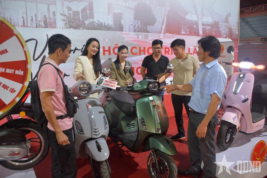 | Khách tham quan các sản phẩm xe thân thiện với môi trường. |