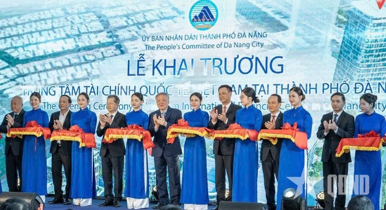 Các đại biểu cắt băng khai trương Trung tâm Tài chính quốc tế Việt Nam tại thành phố Đà Nẵng.