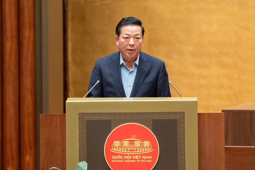 Bộ trưởng Bộ Xây dựng Trần Hồng Minh trình bày tờ trình về một số cơ chế, chính sách đặc thù, đặc biệt áp dụng cho dự án đường sắt tốc độ cao trên trục Bắc-Nam.
