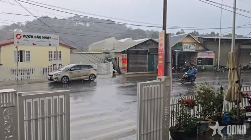 | Mưa xuất hiện tại Đà Lạt chiều 26-2. |