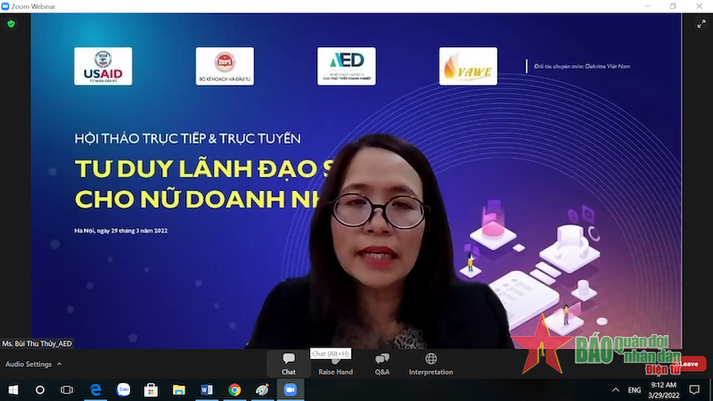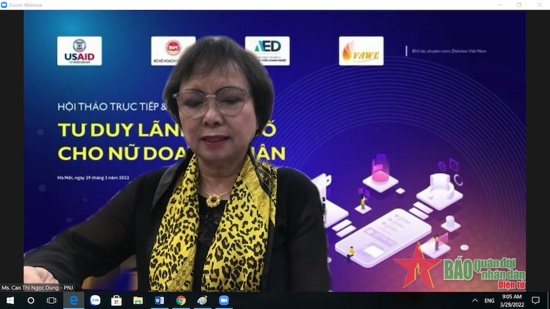 Bà Cao Thị Ngọc Dung, Phó chủ tịch Hiệp hội nữ doanh nhân Việt Nam phát biểu tại hội thảo (Ảnh chụp màn hình).