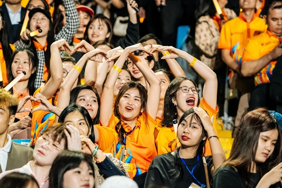 Khung cảnh rực rỡ sắc cam trong Ngày hội Văn hóa SHB & T&T Group tại Sân vận động Quốc gia Mỹ Đình. |