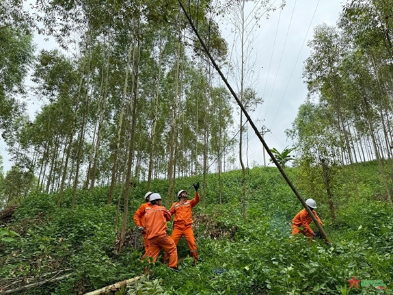 Công nhân Công ty Điện lực Lạng Sơn phát quang hành lang lưới điện. |