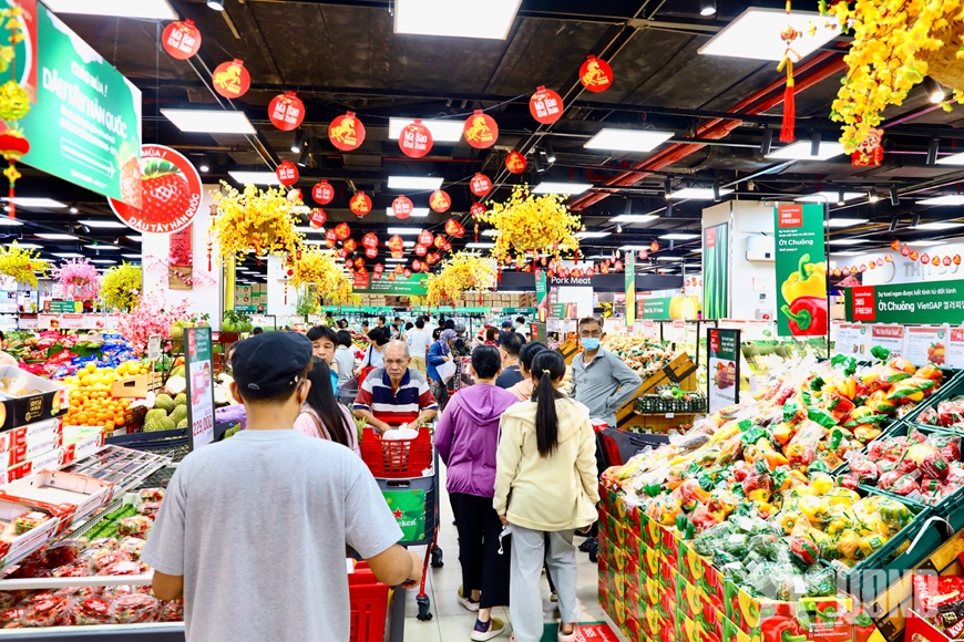 Ghi nhận tại một số hệ thống bán lẻ, các mặt hàng thiết yếu như thịt, trứng, rau củ, thực phẩm chế biến sẵn, bánh mứt, đồ đông lạnh tiêu thụ nhanh. Nhiều chương trình khuyến mãi cuối năm góp phần kích cầu, thu hút đông đảo người dân. Không khí mua sắm khẩn trương nhưng nền nếp, thể hiện sự chủ động chuẩn bị Tết của các gia đình thành phố.