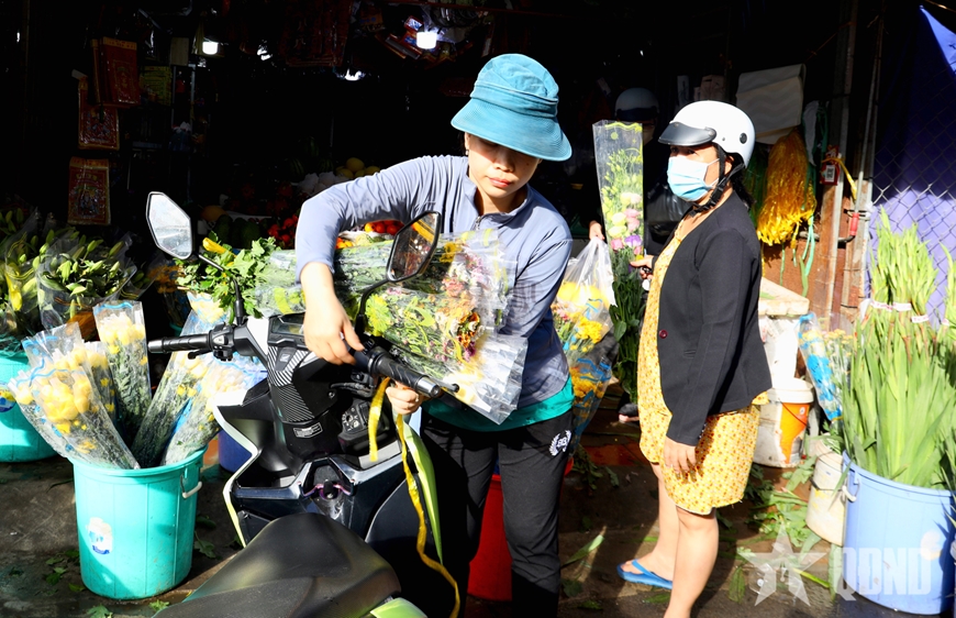 Hình ảnh những giỏ hàng đầy ắp, những gói quà Tết được gói ghém cẩn thận, những bó hoa tươi rực rỡ trên tay người mua tạo nên bức tranh sinh động về nhịp sống ngày giáp Tết. Dù đông đúc, người dân vẫn giữ tâm trạng phấn khởi, háo hức, cùng nhau chuẩn bị đón năm mới đủ đầy, ấm áp.