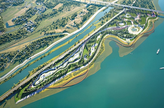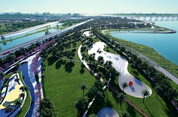 Phối cảnh dự án Trục đại lộ cảnh quan sông Hồng. |