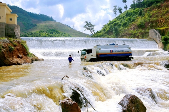 Lội suối, vượt thác, xe xăng dầu đến Sốp Cộp. |