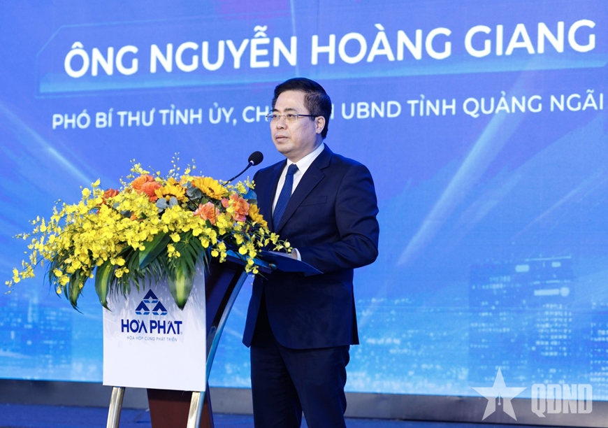 Chủ tịch UBND tỉnh Quảng Ngãi Nguyễn Hoàng Giang phát biểu tại Lễ Khởi công Dự án Nhà máy sản xuất ray và thép đặc biệt Hòa Phát Dung Quất.