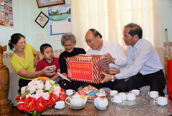 Thủ tướng Nguyễn Xuân Phúc thăm, tặng quà mẹ Việt Nam Anh hùng Đặng Thị Chi. |