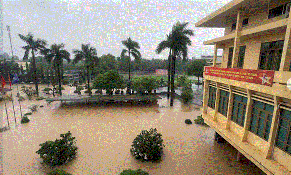 Nước lũ lên cao, có nơi ngập sâu gần 2m tại trụ sở Thái Hưng. |