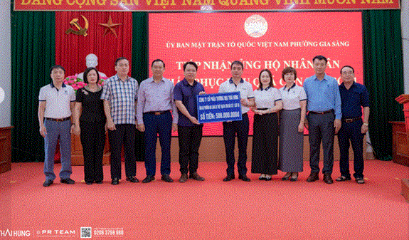 Cũng trong đợt này, tại chương trình tiếp nhận do Ủy ban Mặt trận Tổ quốc tỉnh Thái Nguyên tổ chức, Thái Hưng đã trao số tiền 1 tỷ đồng, chung tay cùng chính quyền địa phương và người dân khắc phục hậu quả thiên tai.