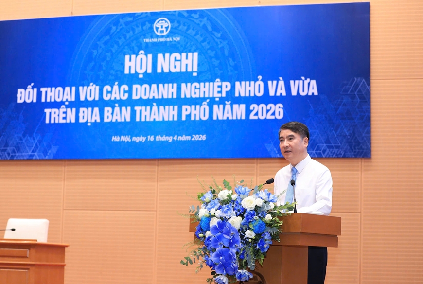Mở đầu phiên đối thoại, Chủ tịch UBND thành phố Vũ Đại Thắng nhấn mạnh, thành phố luôn dành sự quan tâm sâu sắc tới việc hoàn thiện cơ chế, chính sách hỗ trợ cộng đồng doanh nghiệp nhỏ và vừa - khu vực năng động, đông đảo, đóng vai trò quan trọng trong tạo việc làm, bảo đảm sinh kế cho người dân và đóng góp thiết thực vào tăng trưởng kinh tế Thủ đô trong nhiều năm qua.