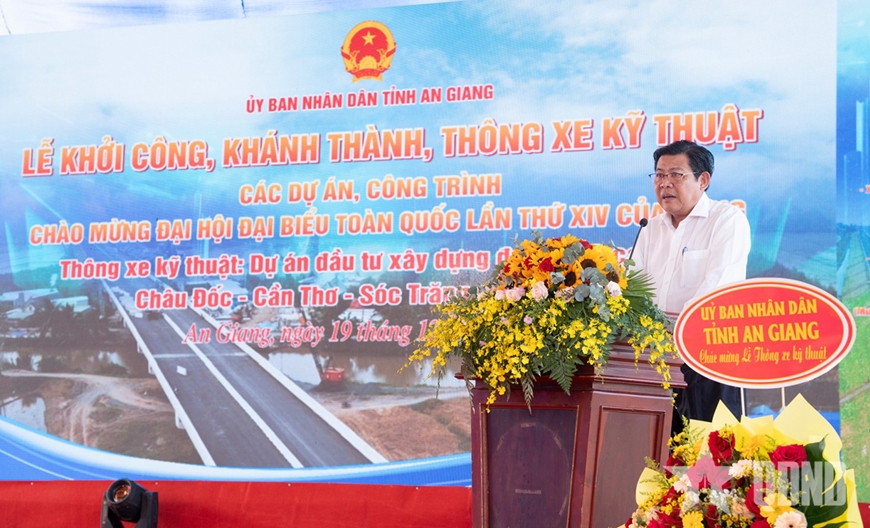 Phát biểu tại buổi lễ, Phó chủ tịch UBND tỉnh An Giang Ngô Công Thức biểu dương chủ đầu tư và các nhà thầu, đặc biệt là đội ngũ cán bộ, kỹ sư, công nhân, người lao động đã nỗ lực thi công với tinh thần “vượt nắng, thắng mưa; ăn tranh thủ, ngủ khẩn trương; thi công 3 ca, 4 kíp; làm việc xuyên lễ, xuyên Tết, xuyên ngày nghỉ”, đúng theo tinh thần chỉ đạo của Thủ tướng Chính phủ và UBND tỉnh.