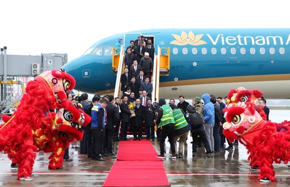 Chuyến bay đầu tiên chở Thủ tướng hạ cánh xuống Cảng hàng không quốc tế Vân Đồn. Ảnh: cand.com.vn |