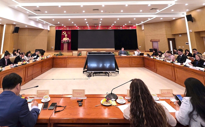 Quang cảnh cuộc tiếp của lãnh đạo Bộ Xây dựng và đoàn doanh nghiệp thuộc Hội đồng Kinh doanh Hoa Kỳ - ASEAN (USABC).