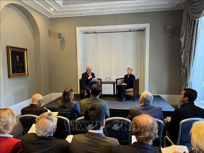 Tổng thống Thụy Sĩ Karin Keller-Sutter (ngồi bên phải) tham dự sự kiện của APES. Ảnh:TTXVN
