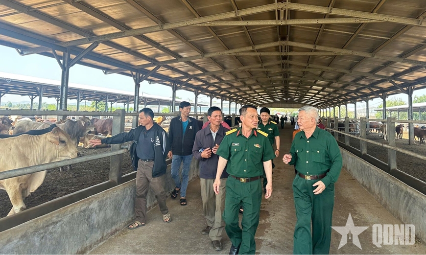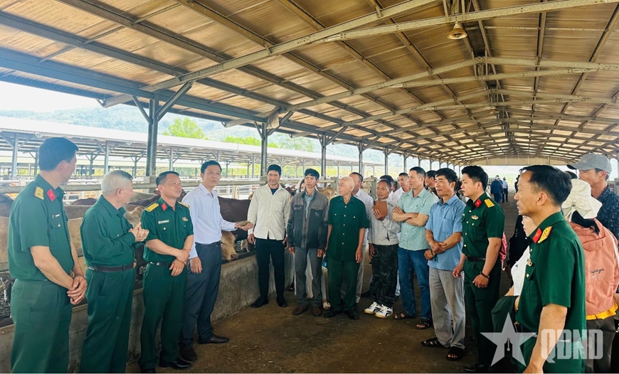| Cán bộ, người lao động Trung đoàn 726 tham quan, tìm hiểu mô hình chăn nuôi kết hợp sản xuất phân bón hữu cơ tại Công ty TNHH Liên hợp Công-Nông nghiệp phát triển bền vững Sao Đỏ (M’Đrắk, Đắk Lắk). |