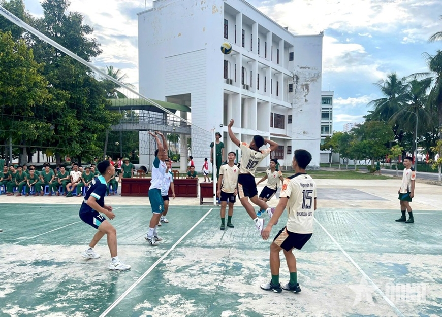 | Tiểu đoàn 26 tổ chức giao lưu bóng chuyền. |