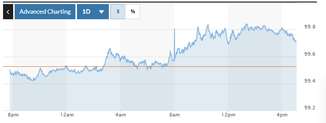 | Biểu đồ biến động Chỉ số DXY trong 24 giờ qua. Ảnh: Marketwatch |