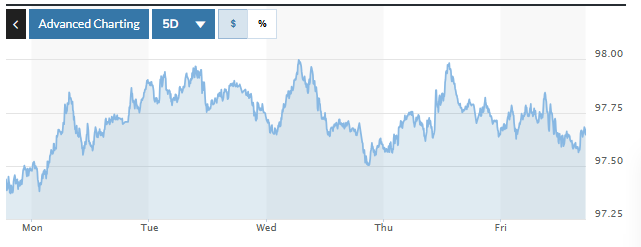 Chỉ số USD Index (DXY), đo lường biến động đồng bạc xanh với 6 đồng tiền chủ chốt giảm tuần 0,15%, xuống mức 97,65.