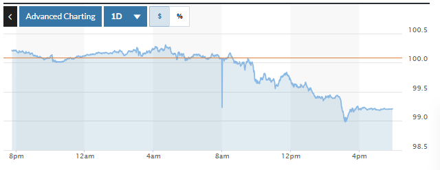 | Biểu đồ biến động Chỉ số DXY trong 24 giờ qua. Ảnh: Market watch |