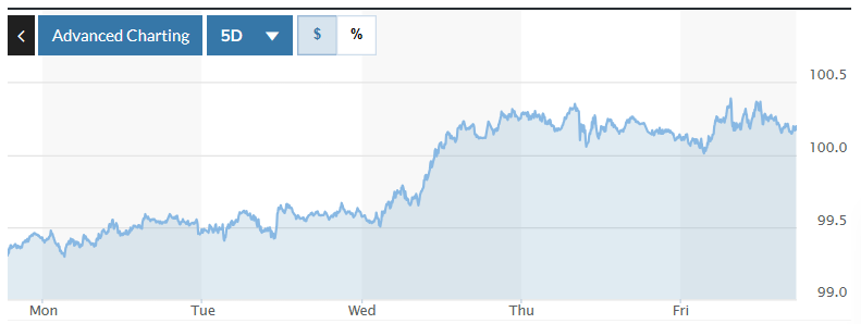 Chỉ số USD Index (DXY), đo lường biến động đồng bạc xanh với 6 đồng tiền chủ chốt tăng tuần 0,90%, lên mức 100,20.