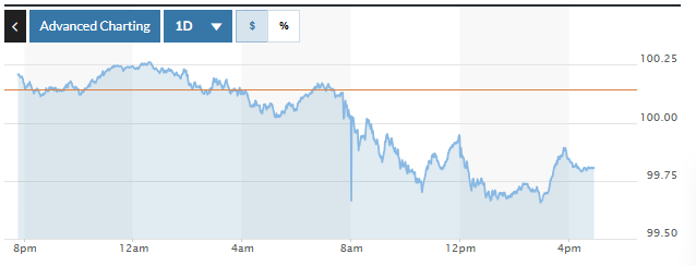 | Biểu đồ biến động Chỉ số DXY trong 24 giờ qua. Ảnh: Marketwatch |