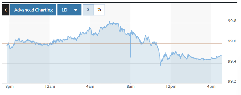 Biểu đồ biến động Chỉ số DXY trong 24 giờ qua. Ảnh: Marketwatch