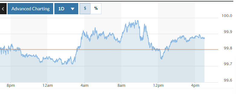 Biểu đồ biến động Chỉ số DXY trong 24 giờ qua. Ảnh: Marketwatch