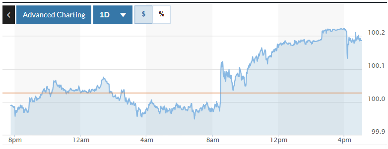 Biểu đồ biến động Chỉ số DXY trong 24 giờ qua. Ảnh: Market watch