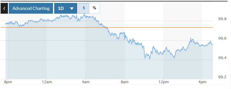 Biểu đồ biến động Chỉ số DXY trong 24 giờ qua. Ảnh: Marketwatch