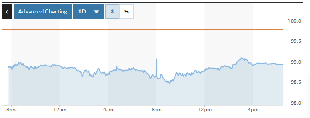| Biểu đồ biến động Chỉ số DXY trong 24 giờ qua. Ảnh: Market watch |