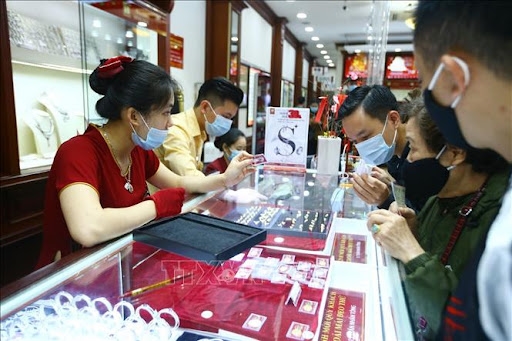 | Vàng trong nước giảm nhẹ chốt phiên chiều 24-12. Ảnh: TTXVN. |