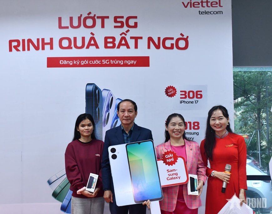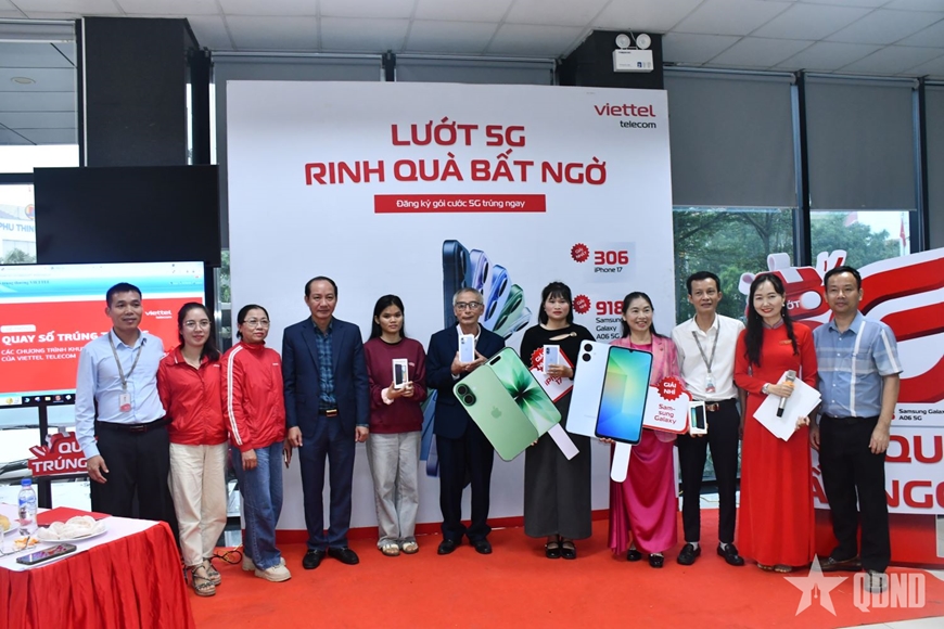 Từ ngày 18-9-2025 đến 31-12-2025, Tổng công ty Viễn thông Viettel triển khai chương trình quay số trúng thưởng “Lướt 5G - Rinh quà bất ngờ” với tổng giải thưởng hơn 10 tỷ đồng, chia làm 3 đợt quay số trúng thưởng. Chương trình được Viettel triển khai nhằm tri ân các khách hàng tin tưởng sử dụng dịch vụ 5G trên toàn quốc, đồng thời mang đến những giá trị thiết thực và lan tỏa niềm vui tới khách hàng khi đăng ký và sử dụng dịch vụ 5G.