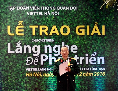 Phát biểu tại buổi lễ, Trung tá Nguyễn Công Binh, Phó giám đốc Viettel Hà Nội khẳng định: Từng phút gọi, từng giây truy cập internet và từng tin nhắn được gửi đi, đó là nhịp sống, là tâm tư tình cảm của mỗi khách hàng. Hiểu rõ điều này, chúng tôi trân trọng công việc mà mình đang làm – công việc truyền tải thông tin và giúp mọi người đến gần nhau hơn. Niềm vinh dự này không phải doanh nghiệp nào cũng có được. Cám ơn tất cả 60 triệu khách hàng đã đặt niềm tin vào Viettel, giúp Viettel gìn giữ niềm vinh dự đó trong suốt 12 năm qua. Trong thời gian tới, từ những ý kiến đóng góp của khách hàng, Viettel sẽ nỗ lực hết mình để hiện thực hóa vào các dịch vụ, cải tiến hệ thống tốt hơn, hoàn thiện hơn. Đồng thời, chương trình “Lắng nghe để phát triển” sẽ tiếp tục trong năm 2017, ngày càng đổi mới hơn để khách hàng gửi ý kiến tới Viettel nhiều hơn nữa.