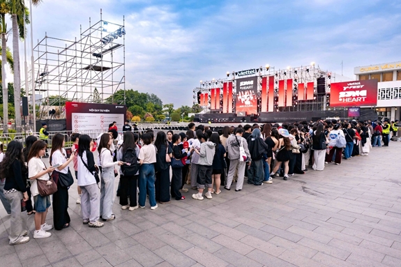 Đông đảo các bạn trẻ xếp hàng, háo hức đón chờ đêm diễn. Lần đầu tiên, các bạn trẻ được Hải Phòng được đắm chìm với khí thế rựa lửa của Y-Fest. |