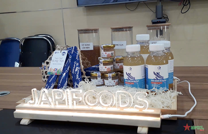 Sản phẩm chế biến từ rong biển của doanh nghiệp Việt Nam được trưng bày, giới thiệu tại hội thảo. |