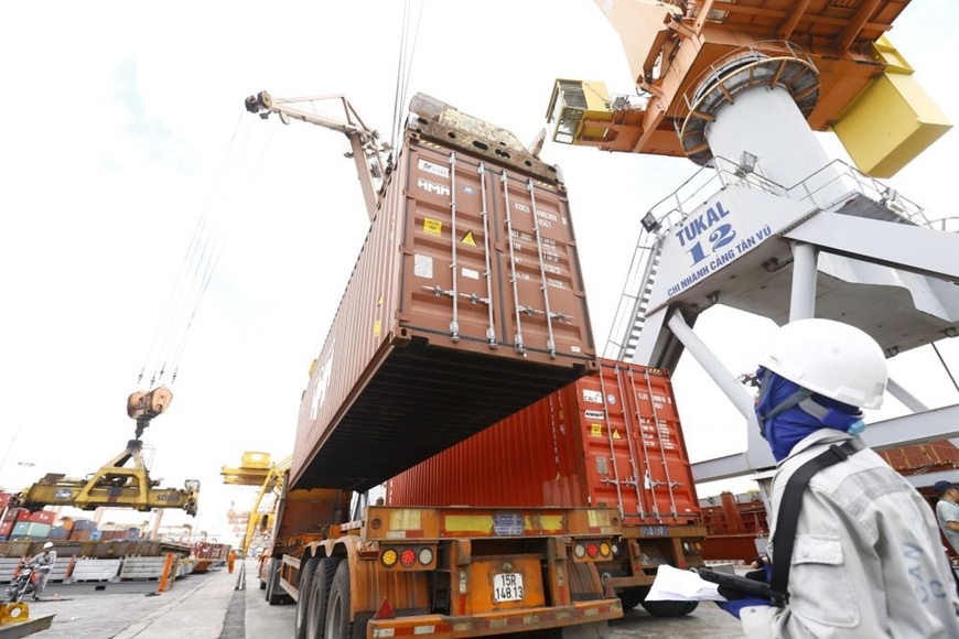 | Bốc xếp hàng tại Cảng Tân Vũ, Hải Phòng. Ảnh: TRỌNG HẢI |