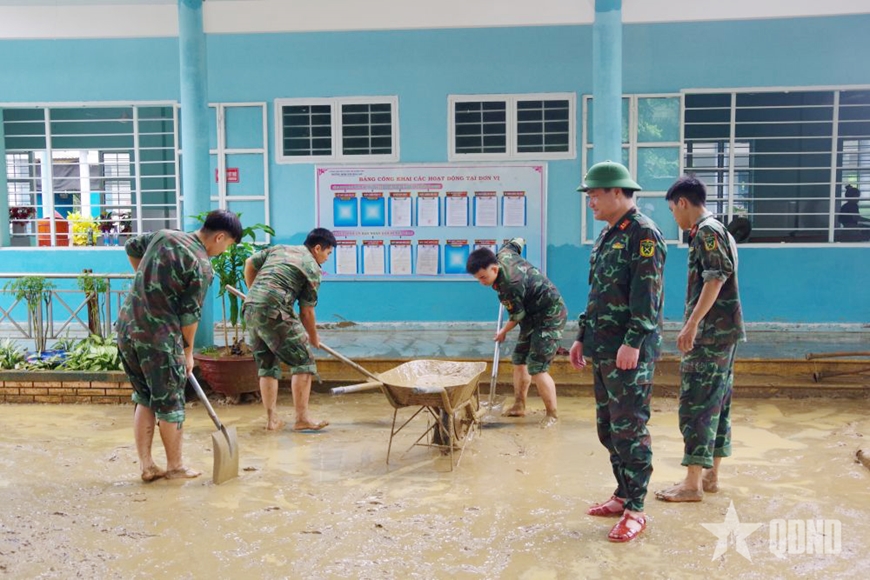 Tại các điểm trường, các tổ công tác tập trung hỗ trợ thu dọn bùn đất trong lớp học và khuôn viên, vệ sinh môi trường, khơi thông cống rãnh, kê dọn trang thiết bị, tu sửa lại những hạng mục bị ảnh hưởng do mưa lũ, để hoạt động dạy và học tại các trường sớm được khôi phục. Trong quá trình thực hiện nhiệm vụ, cán bộ, học viên Nhà trường luôn nêu cao tinh thần trách nhiệm, đoàn kết, khẩn trương, chấp hành nghiêm kỷ luật và bảo đảm an toàn tuyệt đối về người và phương tiện.