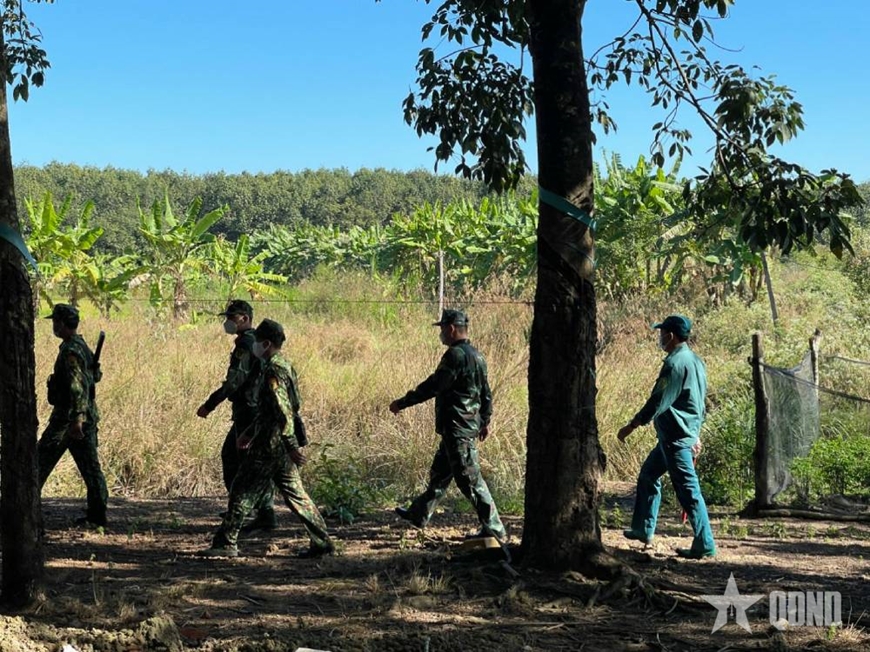 Song song với đó, Ban Tham mưu còn làm tốt nhiệm vụ phối hợp với cấp ủy, chính quyền và lực lượng vũ trang địa phương theo Nghị định số 03/2019/NĐ-CP của Chính phủ, thực hiện hiệu quả các biện pháp bảo vệ an ninh trật tự khu vực biên giới. Từ năm 2020 đến 2025, đơn vị đã tổ chức 222 lượt tuần tra với hơn 3.300 lượt người, phối hợp xác minh, trao đổi 787 nguồn tin liên quan đến an ninh dân tộc, tôn giáo và an ninh biên giới, góp phần ngăn chặn hiệu quả tình trạng xâm nhập, vượt biên, giữ vững chủ quyền và an toàn vùng dự án.