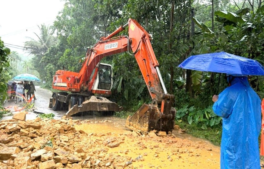 Trước đó, vào đêm 26, rạng sáng 27-10, quả đồi phía sau nhà chị Lê Thị Xuân Trà (39 tuổi, trú tại thôn 5, xã Trà Tân) bất ngờ sạt lở, gây sập đổ toàn bộ hai gian phòng ngủ. Rất may, cách đó vài giờ, toàn bộ 6 thành viên trong gia đình chị đã được bộ đội, công an đưa đi sơ tán nên không có thiệt hại về người. Tuy nhiên, đất đá từ trên đồi cao liên tục ào qua nhà chị Trà, lấp gần 60m mặt đường 40B và tràn vào nhà các hộ dân ở bên kia đường.