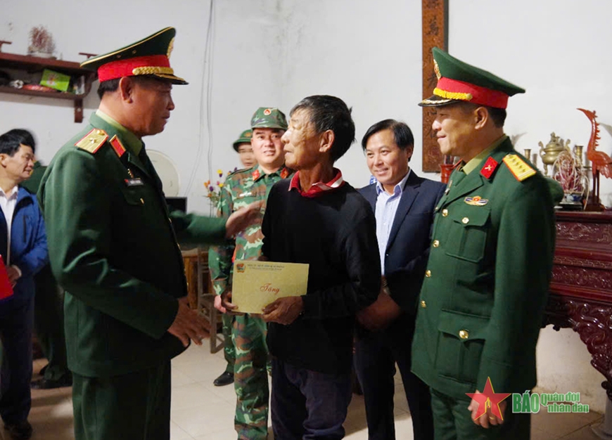 | Thiếu tướng Nguyễn Thanh Tình, Phó chính ủy Quân đoàn 12 trao quà tặng gia đình chính sách trên địa bàn Sư đoàn 390 đóng quân và làm nhiệm vụ. |