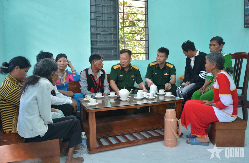 Cán bộ Lữ đoàn Đặc công nước 5 thăm hỏi gia đình bà Chamaléa Thị Lệ và các gia đình thôn Gia É, xã Bác Ái Tây.