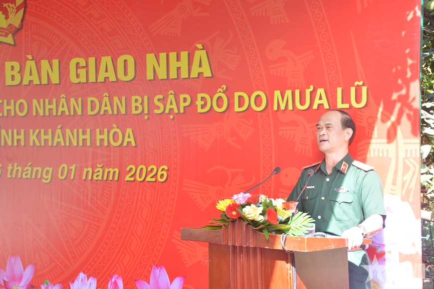 | Lãnh đạo Bộ CHQS tỉnh Khánh Hòa trao quà tặng các gia đình. |