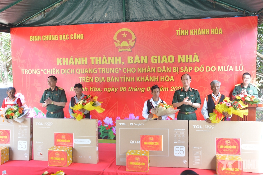 Thực hiện “Chiến dịch Quang Trung”, từ ngày 4-12, Binh chủng Đặc công đã tổ chức nhiều tổ, đội cơ động với hàng trăm cán bộ, chiến sĩ, cùng phương tiện các loại để xây dựng, sửa chữa 48 nhà cho nhân dân trên địa bàn các xã Bác Ái Tây, Mỹ Sơn, Phước Hậu, Đô Vinh, Xuân Hải, Hòa Thắng, Nam Khánh Vĩnh, Tây Khánh Vĩnh thuộc tỉnh Khánh Hòa và xã Hòa Thịnh, tỉnh Đắk Lắk (Khánh Hòa 30 nhà và Đắk Lắk 18 nhà).