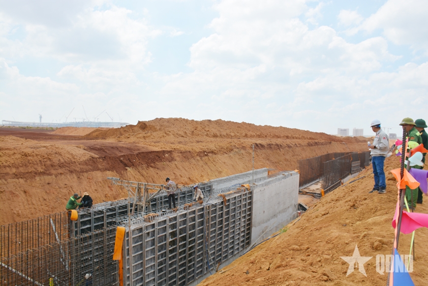| Cán bộ, nhân viên, người lao động Binh đoàn 12 thi công tại dự án Cảng hàng không quốc tế Long Thành. |