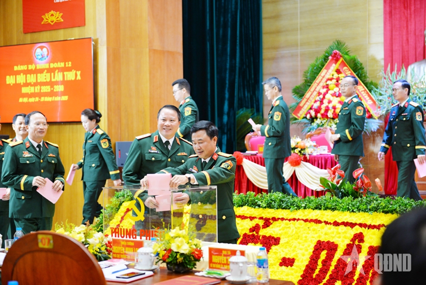 | Quang cảnh Đại hội đại biểu lần thứ X Đảng bộ Binh đoàn 12, nhiệm kỳ 2025-2030. |