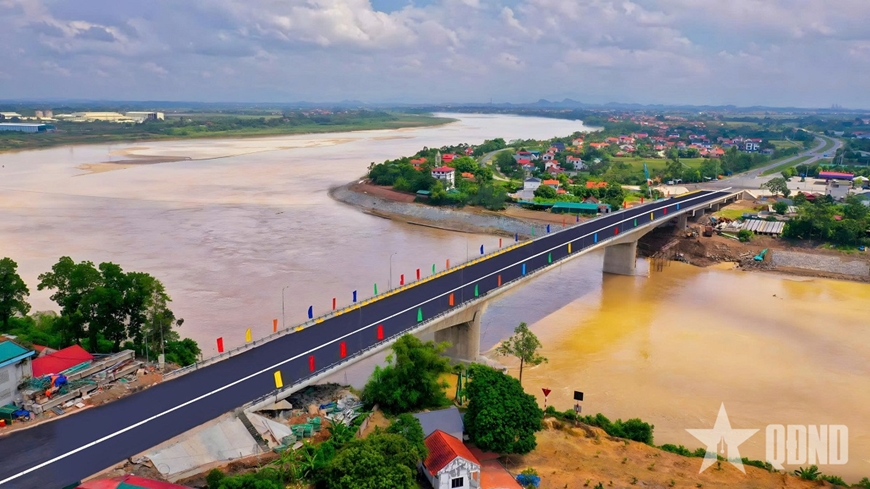 | Cầu Phong Châu mới được Binh đoàn 12 hoàn thành xây dựng theo lệnh khẩn cấp. Ảnh: ĐÌNH HUY |