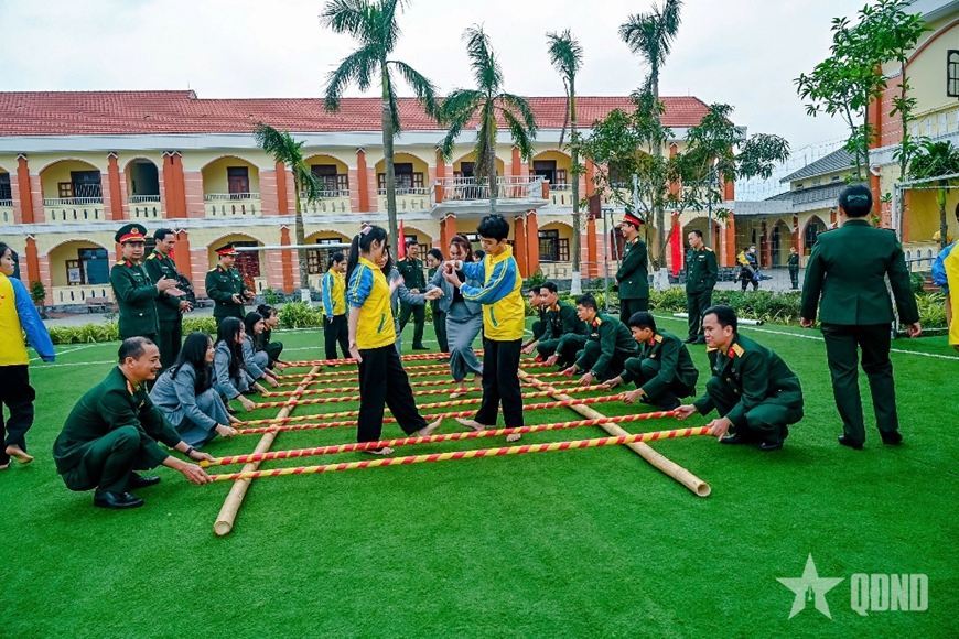 Hình ảnh các cô, chú bộ đội không còn xa lạ với các em nhỏ nơi đây. Đó là những buổi sinh hoạt tập trung hằng tháng, nơi tiếng hát vang lên, những bàn tay nhỏ bé vụng về vỗ nhịp theo các chú bộ đội trong chương trình văn nghệ, thể dục - thể thao; là những ngày “em tập làm chiến sĩ”, khi các em được khoác lên mình chiếc mũ tai bèo, ánh mắt lấp lánh niềm vui.