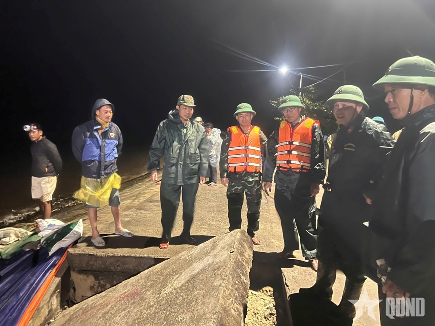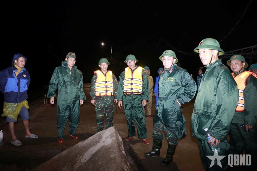 Lãnh đạo, chỉ huy Bộ CHQS TP Đà Nẵng và các đơn vị kiểm tra, động viên bộ đội tại hiện trường.